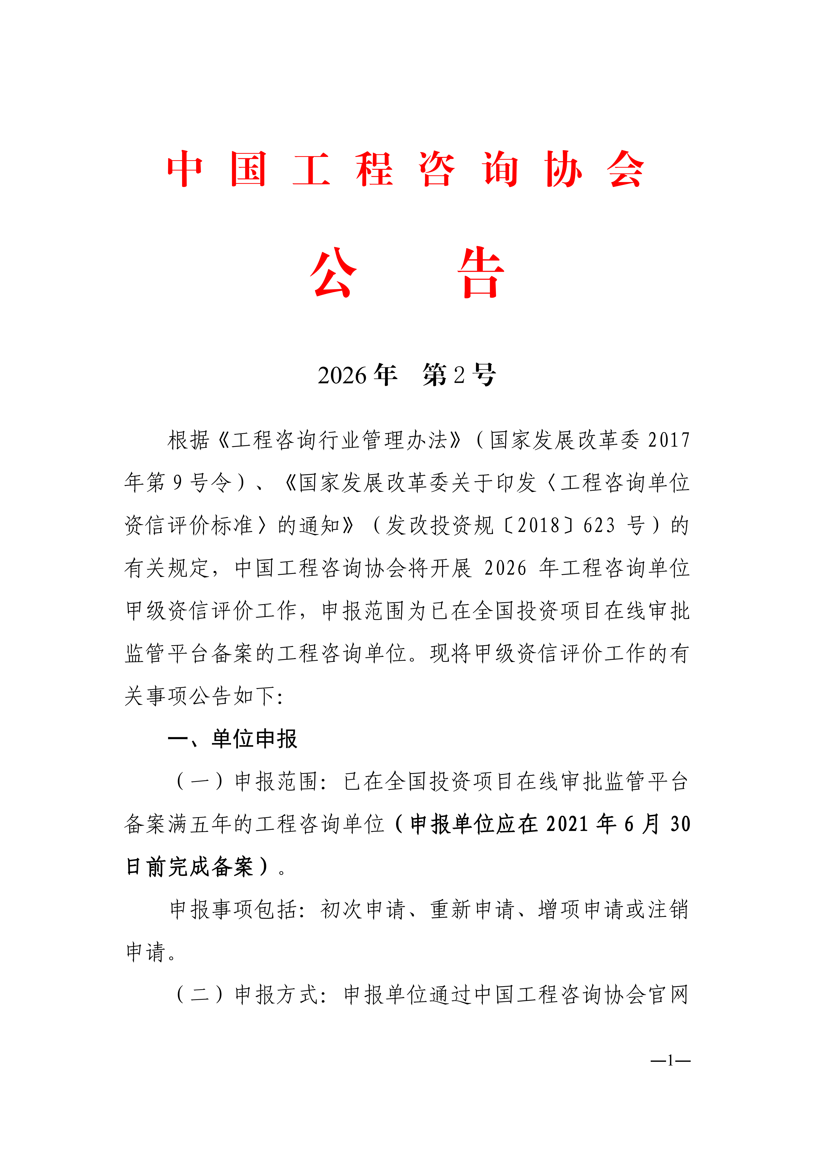 2026年第2号公告(2026年工程咨询单位甲级资信申报公告)