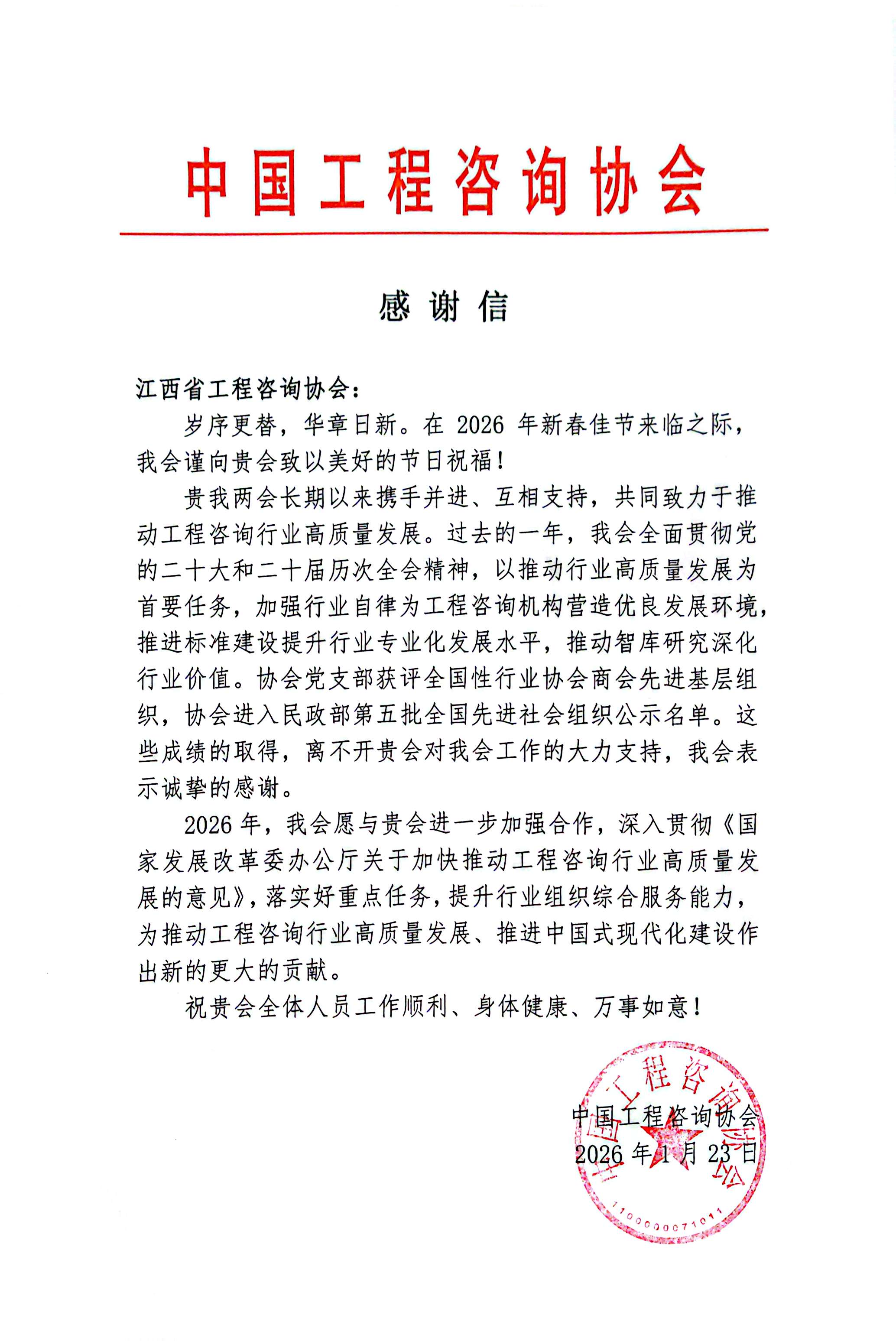 中国工程咨询协会感谢信