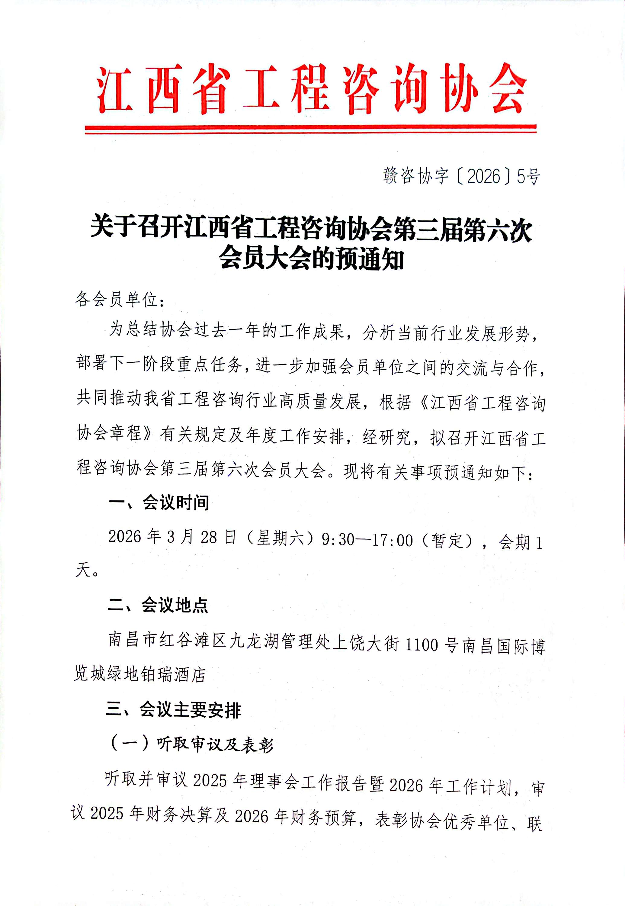 关于召开江西省工程咨询协会第三届第六次会员大会的预通知